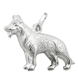 Der Hund ist der beste Freund des Menschen! Detailreich gearbeiteter Kettenanhänger Deutscher Schäferhund in Sterling Silber 925, ist 14x20x4mm groß, ausgeformt und innen hohl. Ursprünglich gezüchtet als Arbeitshund, um dem Schäfer das Hüten der Schafe zu erleichtern, reichen seine anerzogenen Fähigkeiten vom Zusammentreiben der Herde bis zum Schutz von Person und Eigentum seiner Menschenfamilie. Ein passendes Geschenk für stolze Hundebesitzer und ~Besitzerinnen.
