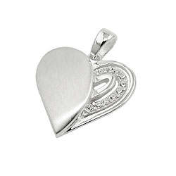 Herz ist Trumpf! Dieser extravagante, 16x16mm große Herz-Anhänger aus Sterling Silber 925, gearbeitet in hochwertiger Juwelierqualität, ist durch den halbförmigen Gegensatz von glatter, matt gebürsteter und offener, glänzender, mit weißen gefassten Zirkonias besetzte Herzhälfte eine augenfällige Erscheinung! Ein liebevolles Geschenk zum Valentinstag, Kennenlerntag, Hochzeitstag oder einfach mal als anregende Aufmerksamkeit zwischendurch!