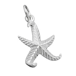 Neckischer kleiner Anhänger Seestern in Sterling Silber 925, 20mm groß, massiv, Vorder- und Rückseite gemustert, mit drei leicht gerollten Armen, die aussehen, als ob sie winken würden. Die hochwertige Juwelierqualität sorgt für langanhaltende Freude an diesem eleganten Schmuckstück. Seesterne haben zwar kein Hirn und kein Herz, dafür ein ausgeprägtes Nervensystem mit dem sie auch "sehen" und "riechen" können. Das maritime Motiv ist eine wunderschöne Erinnerung an den Sommerurlaub und das passende Geschenk für Liebhaberinnen der offenen See - nicht nur als Kinderschmuck geeignet!