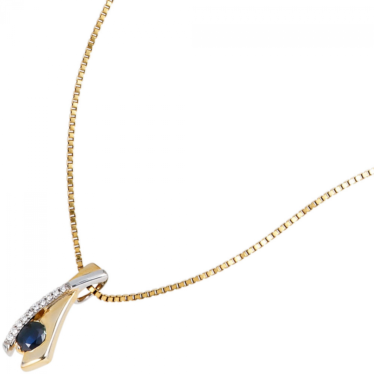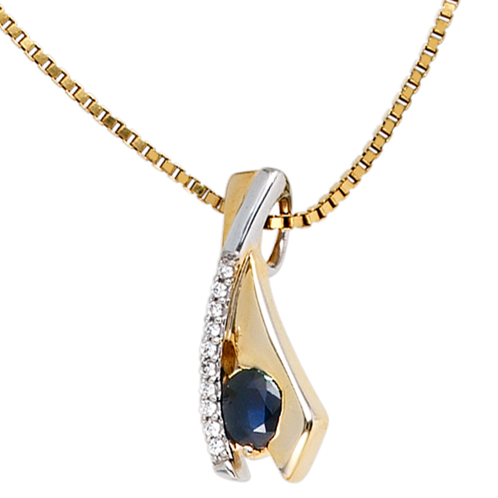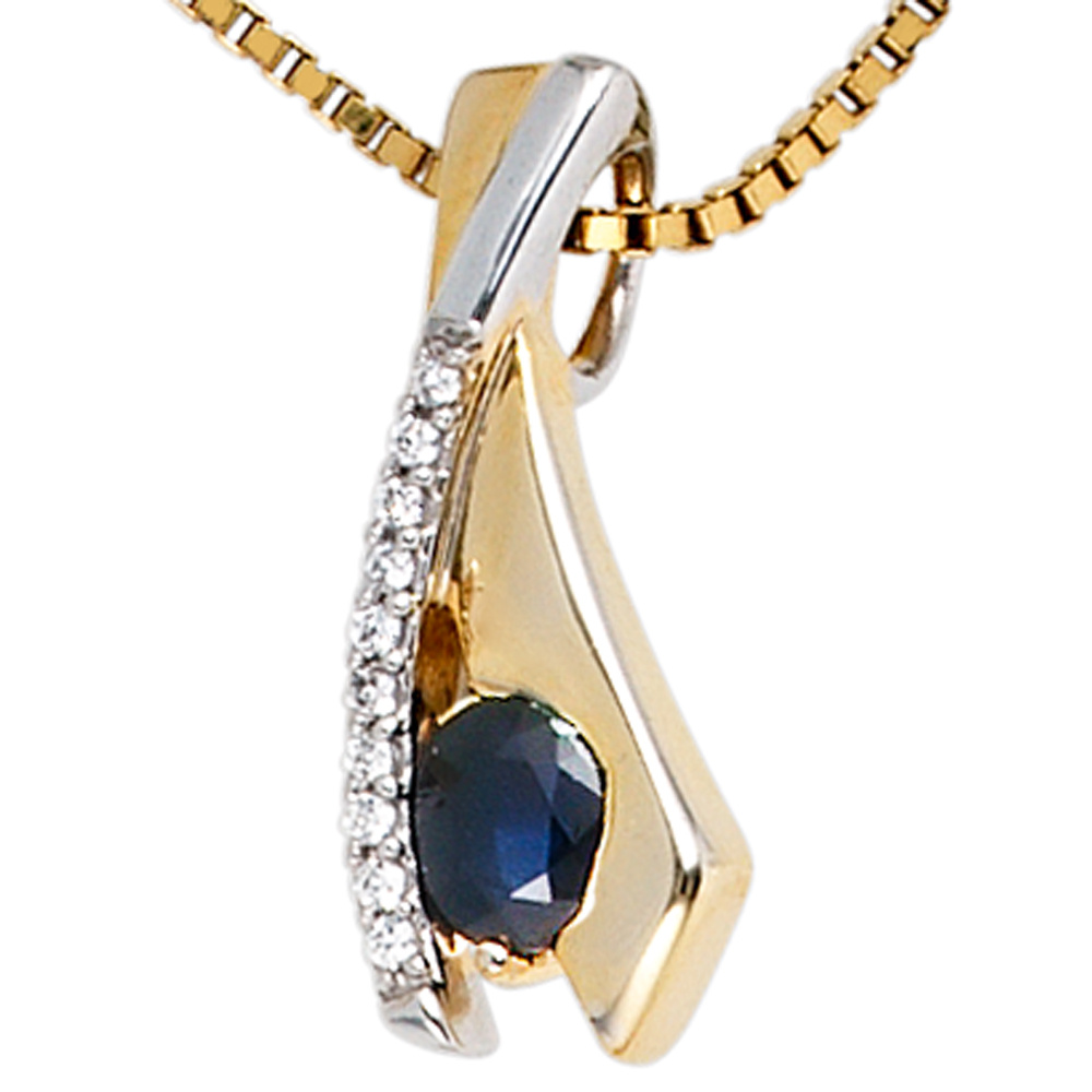 Anhänger aus 8 Karat (333) Gelbgold, teilrhodiniert, mit einem blauen Safir und 10 Zirkonia, Höhe ca. 18,9 mm, Breite ca. 6,9 mm, Tiefe ca. 2,3 mm, Innenmaße der Öse ca. 3,5 mm x 2,4 mm, Gewicht ca. 1,0 g * Bitte beachten Sie die Maße! Auf dem Foto kann der Artikel größer wirken *