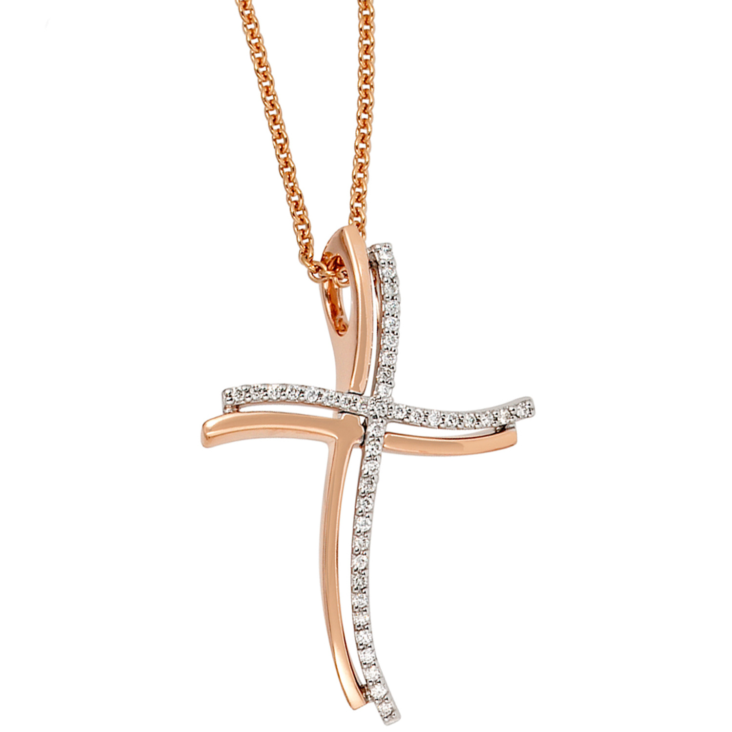 Anhänger 'Kreuz' ohne Kette aus 14 Karat (585) Gold, Weißgold mit Rotgold kombiniert, mit 42 Diamant-Brillanten, 0,231 ct., W/SI wesselton (weiß), SI=(kleine, mit bloßem Auge nicht erkennbare natürliche Einschlüsse), Feinbearbeitung gut, Höhe ca. 35,3 mm, Breite ca. 24,5 mm, Tiefe ca. 3,5 mm, Innenmaße der Öse ca. 5,1 mm x 3,2 mm, Gewicht ca. 4,1 g * Bitte beachten Sie die Maße! Auf dem Foto kann der Artikel größer wirken *