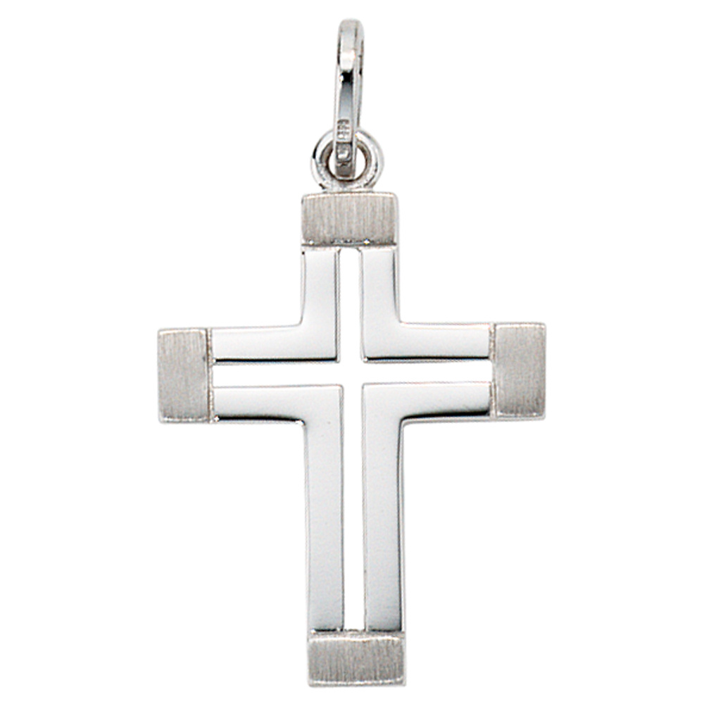 Anhänger 'Kreuz' aus 14 Karat (585) Weißgold, teilmattiert, Höhe ca. 22,5 mm, Breite ca. 15,5 mm, Tiefe ca. 1,7 mm, Innenmaße der Öse ca. 4,3 mm x 2,7 mm, Gewicht ca. 2,0 g * Bitte beachten Sie die Maße! Auf dem Foto kann der Artikel größer wirken *