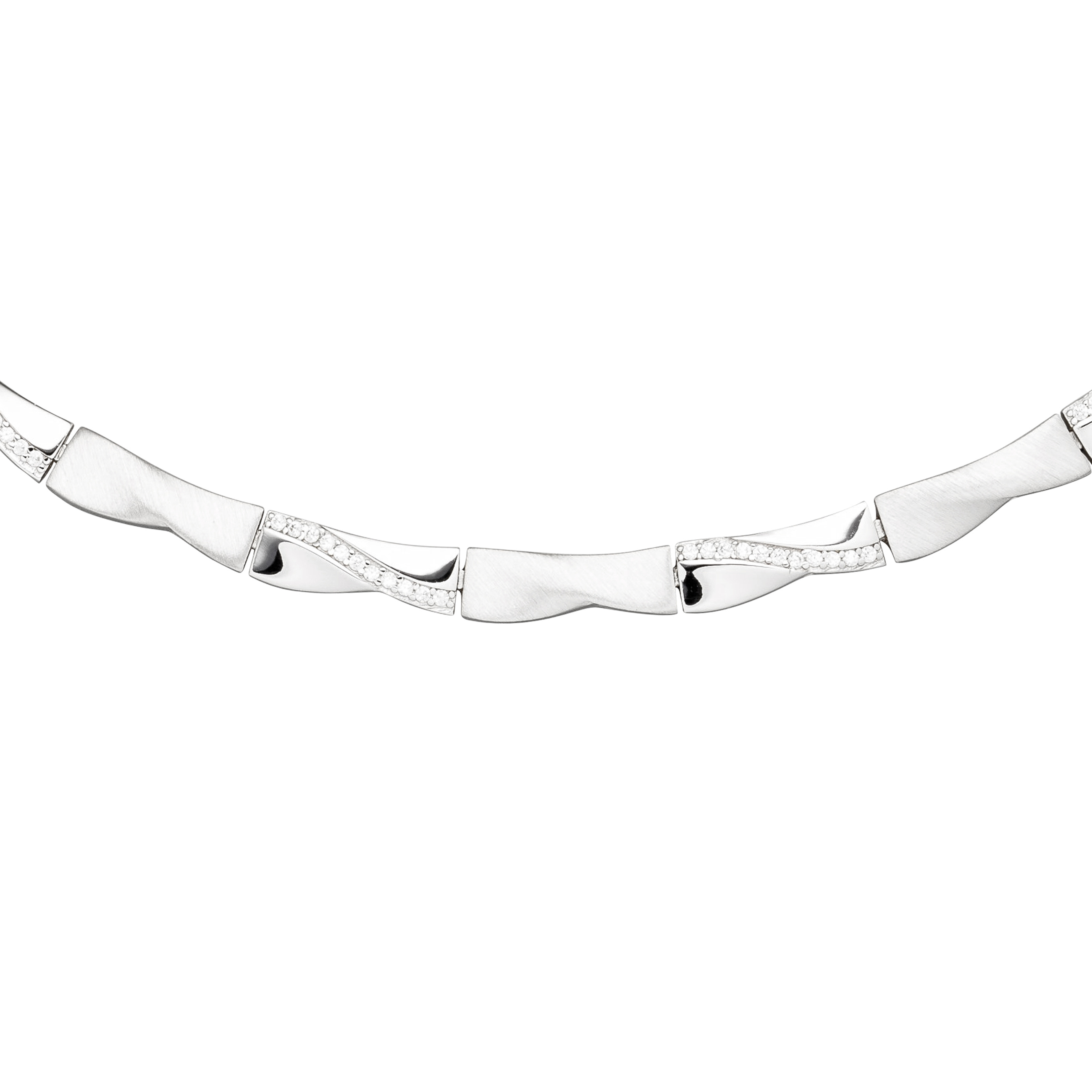 Collier / Halskette aus 925 Sterlingsilber, rhodiniert und teilmattiert, mit 154 Zirkonia und Karabinerverschluss, Länge ca. 45 cm, Kettenstärke ca. 5,3 mm x 3 mm, Gewicht ca. 21,6 g * Der Artikel ist anlaufgeschützt (rhodiniert) * Bitte beachten Sie die Maße! Auf dem Foto kann der Artikel größer wirken *