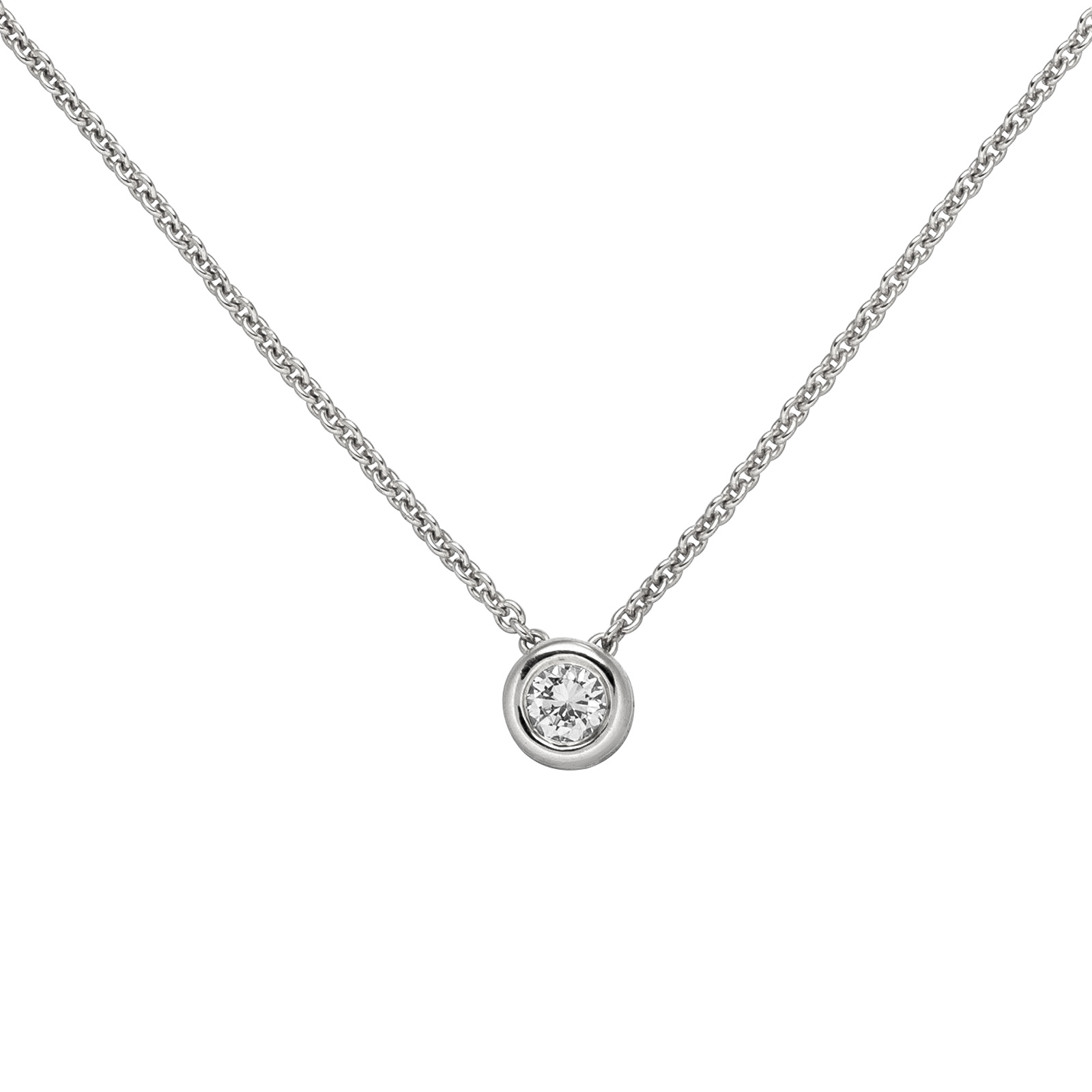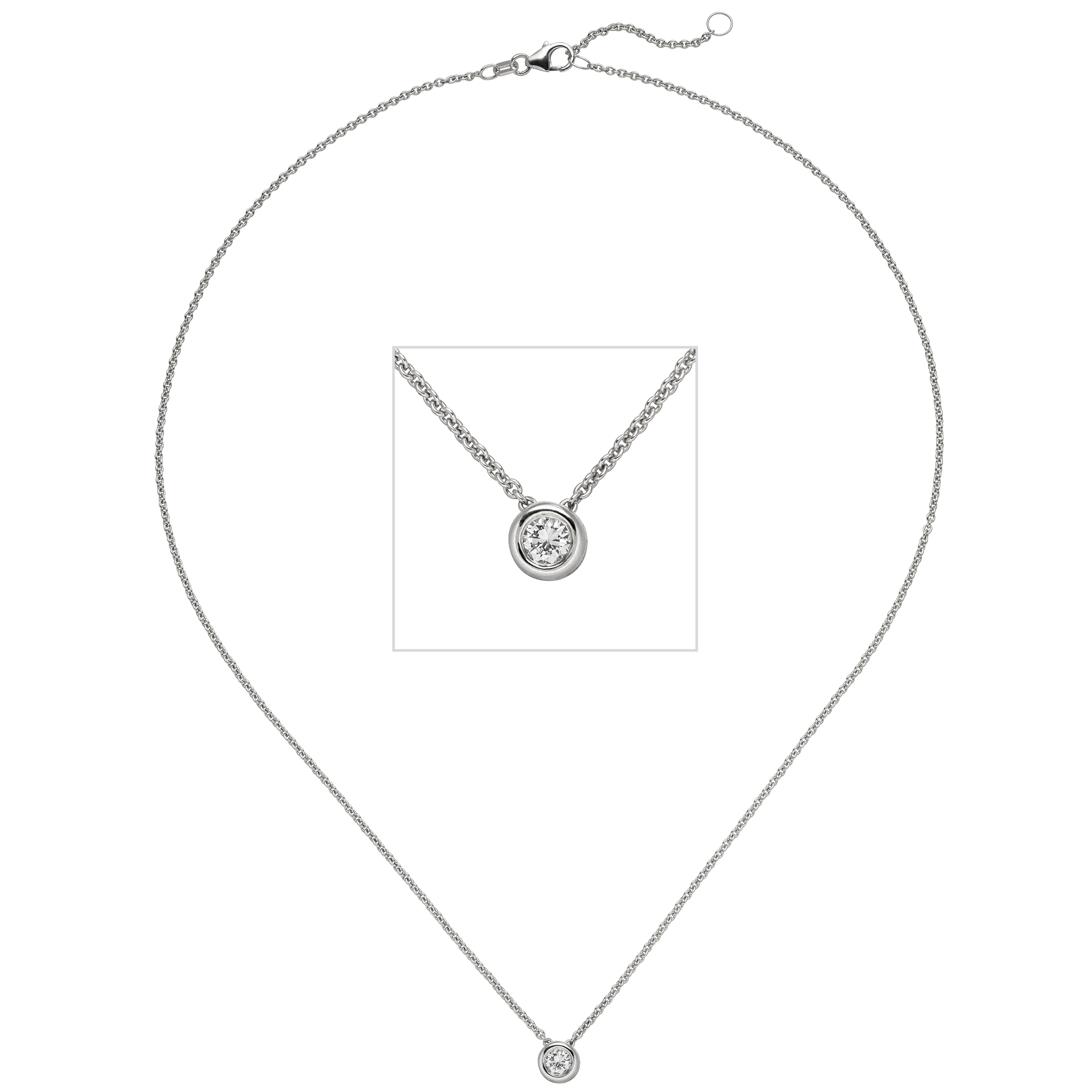 Collier / Ankerkette mit Anhänger aus 14 Karat (585) Weißgold mit einem Diamant-Brillanten, 0,15 ct., W/SI wesselton (weiß), SI=(kleine, mit bloßem Auge nicht erkennbare natürliche Einschlüsse), Feinbearbeitung gut, mit Karabinerverschluss, Länge ca. 45 cm, auf 42 cm verkürzbar, Durchmesser ca. 6,1 mm, Kettenstärke ca. 1,1 mm x 1,1 mm, Tiefe ca. 3,8 mm, Gewicht ca. 3,0 g * Bitte beachten Sie die Maße! Auf dem Foto kann der Artikel größer wirken *