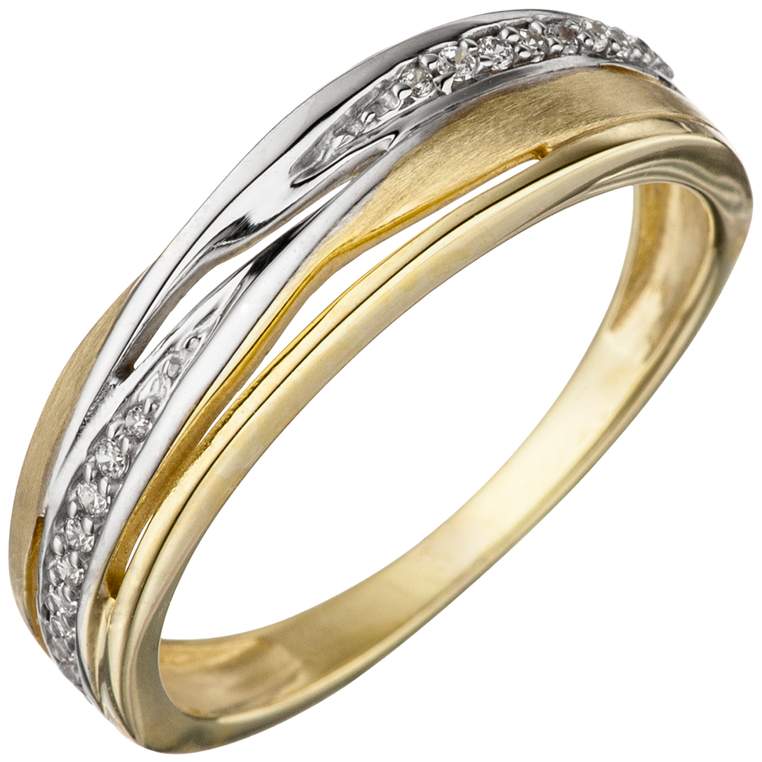 Damenring aus 8 Karat (333) Gelbgold, teilrhodiniert und teilmattiert, mit Zirkonia, Breite ca. 5,2 mm, Tiefe ca. 2,8 mm, Gewicht ca. 2,4 g * Bitte beachten Sie die Maße! Auf dem Foto kann der Artikel größer wirken *