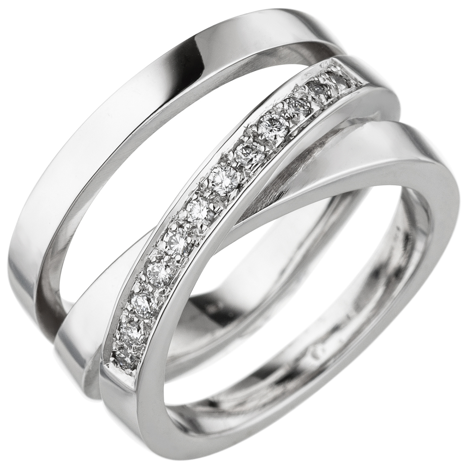 Damenring aus 14 Karat (585) Weißgold mit 12 Diamant-Brillanten, 0,18 ct., W/SI wesselton (weiß), SI=(kleine, mit bloßem Auge nicht erkennbare natürliche Einschlüsse), Feinbearbeitung gut, Breite ca. 10,9 mm, Tiefe ca. 5,8 mm, Gewicht ca. 13,5 g * Bitte beachten Sie die Maße! Auf dem Foto kann der Artikel größer wirken *