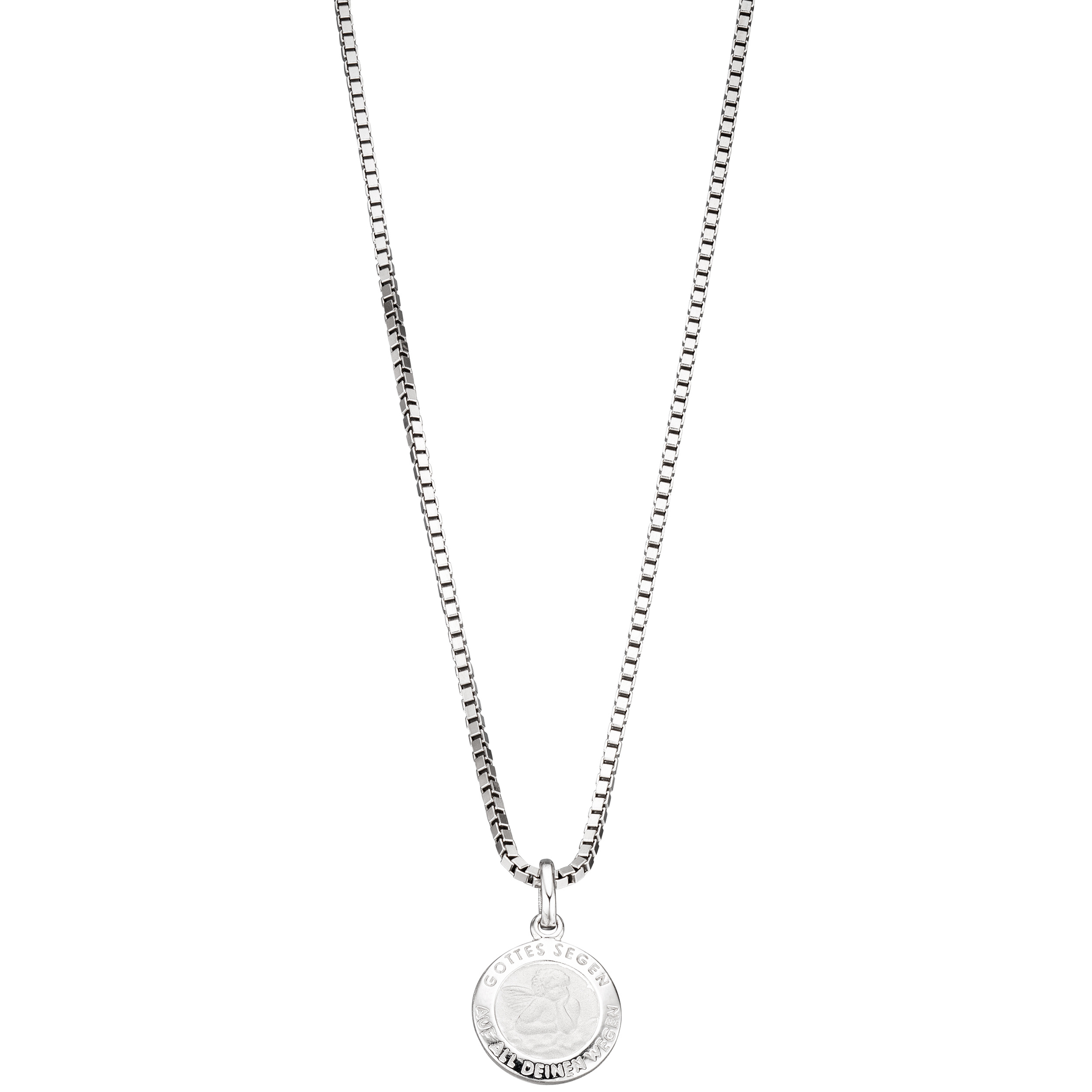 Anhänger 'Schutzengel' aus 925 Sterlingsilber, rhodiniert und teilmattiert, mit rückseitiger Prägung 'Gott schütze Dich', Durchmesser ca. 10,4 mm, Tiefe ca. 1,2 mm, Innenmaße der Öse ca. 3,4 mm x 2,8 mm, Gewicht ca. 0,8 g * Der Artikel ist anlaufgeschützt (rhodiniert) * Bitte beachten Sie die Maße! Auf dem Foto kann der Artikel größer wirken *
