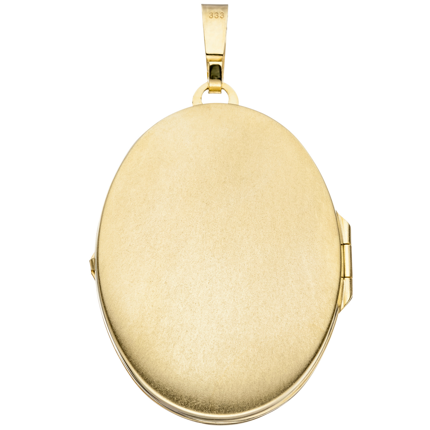 Ovales Medaillon für bis zu 2 Fotos aus 8 Karat (333) Gelbgold, Höhe ca. 39,9 mm, Breite ca. 29 mm, Tiefe ca. 6,8 mm, Innenmaße der Öse ca. 8,6 mm x 5,4 mm, Gewicht ca. 6,5 g * Bitte beachten Sie die Maße! Auf dem Foto kann der Artikel größer wirken *