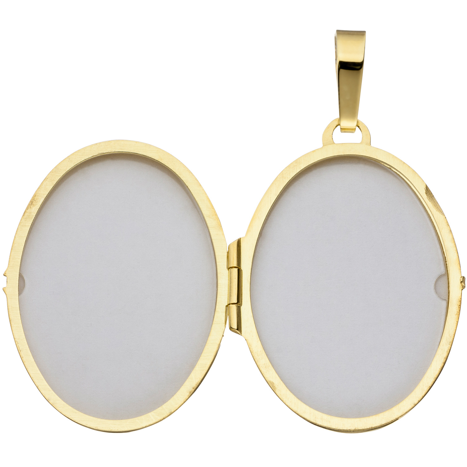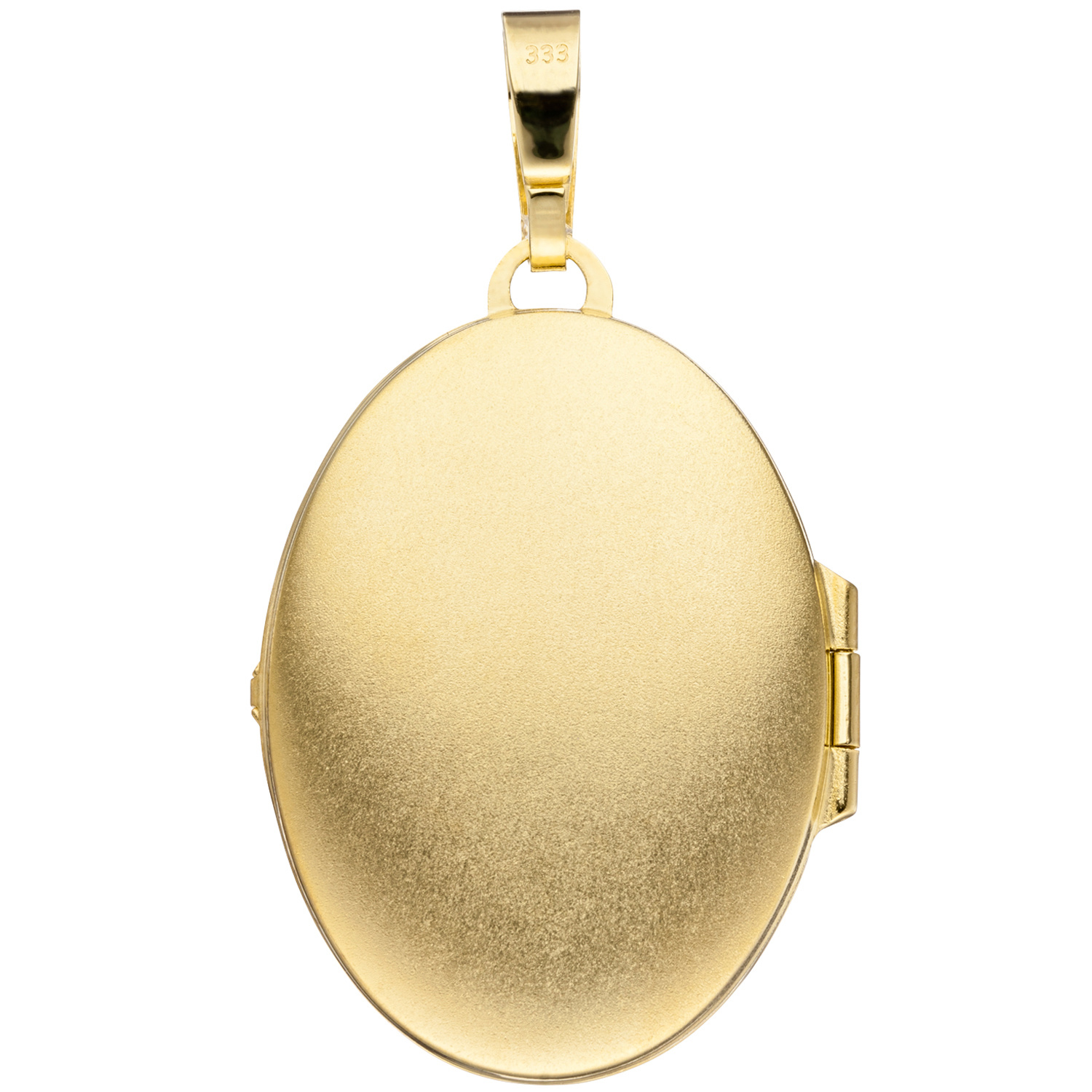 Ovales Medaillon für bis zu 2 Fotos aus 8 Karat (333) Gelbgold, teilmattiert, Höhe ca. 33,8 mm, Breite ca. 24,1 mm, Tiefe ca. 5,8 mm, Innenmaße der Öse ca. 8,3 mm x 5,2 mm, Gewicht ca. 4,5 g * Bitte beachten Sie die Maße! Auf dem Foto kann der Artikel größer wirken *
