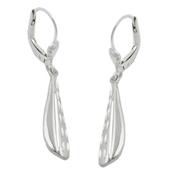 Wunderschöne, 36x5mm große Ohrbrisur in Sterling Silber 925 mit Anhängerpendel in sanft abgerundeter Dreiecksform. Das schwingende Pendel ist 21x5mm groß, leicht gewölbt, längs fast mittig eingeschlitzt und teilt sich in eine hochglänzende und in eine diamantierte Seite, die Rückseite der federleichten Pressung ist hohl. Dieser einfach schöne Ohrring mit Klappverschluss in rechts-links-Variante schmeichelt der Gesichtsform und ist der passende Schmuck für den Alltag. Der Diamantschliff wird freihändig ausgeführt und das Muster kann leicht vom Bild abweichen.