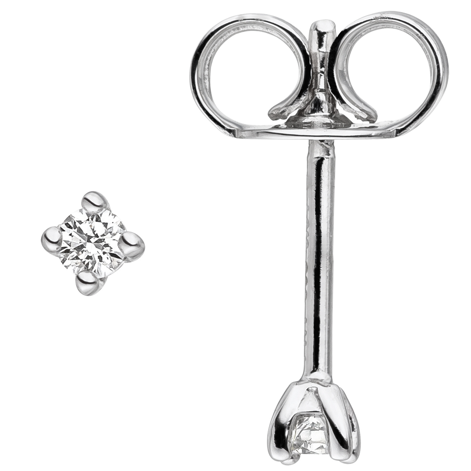 1 Paar Ohrstecker aus 14 Karat (585) Weißgold mit 2 Diamant-Brillanten, 0,08 ct., W/SI wesselton (weiß), SI=(kleine, mit bloßem Auge nicht erkennbare natürliche Einschlüsse), Feinbearbeitung gut, Höhe ca. 2,3 mm, Breite ca. 2,3 mm, Gewicht ca. 0,6 g * Bitte beachten Sie die Maße! Auf dem Foto kann der Artikel größer wirken *