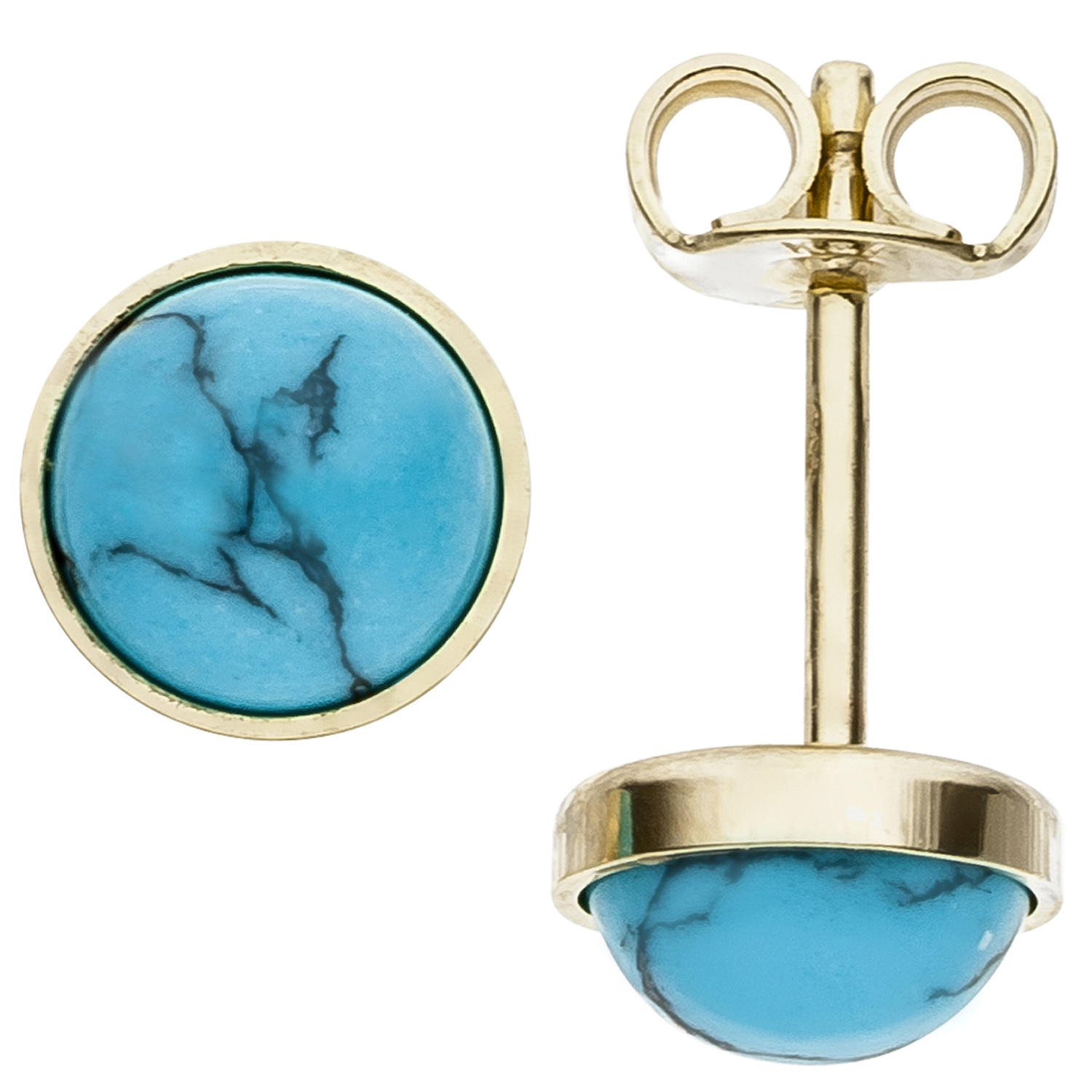 Ohrstecker rund 333 Gold Gelbgold 2 Türkise Ohrringe Goldohrstecker