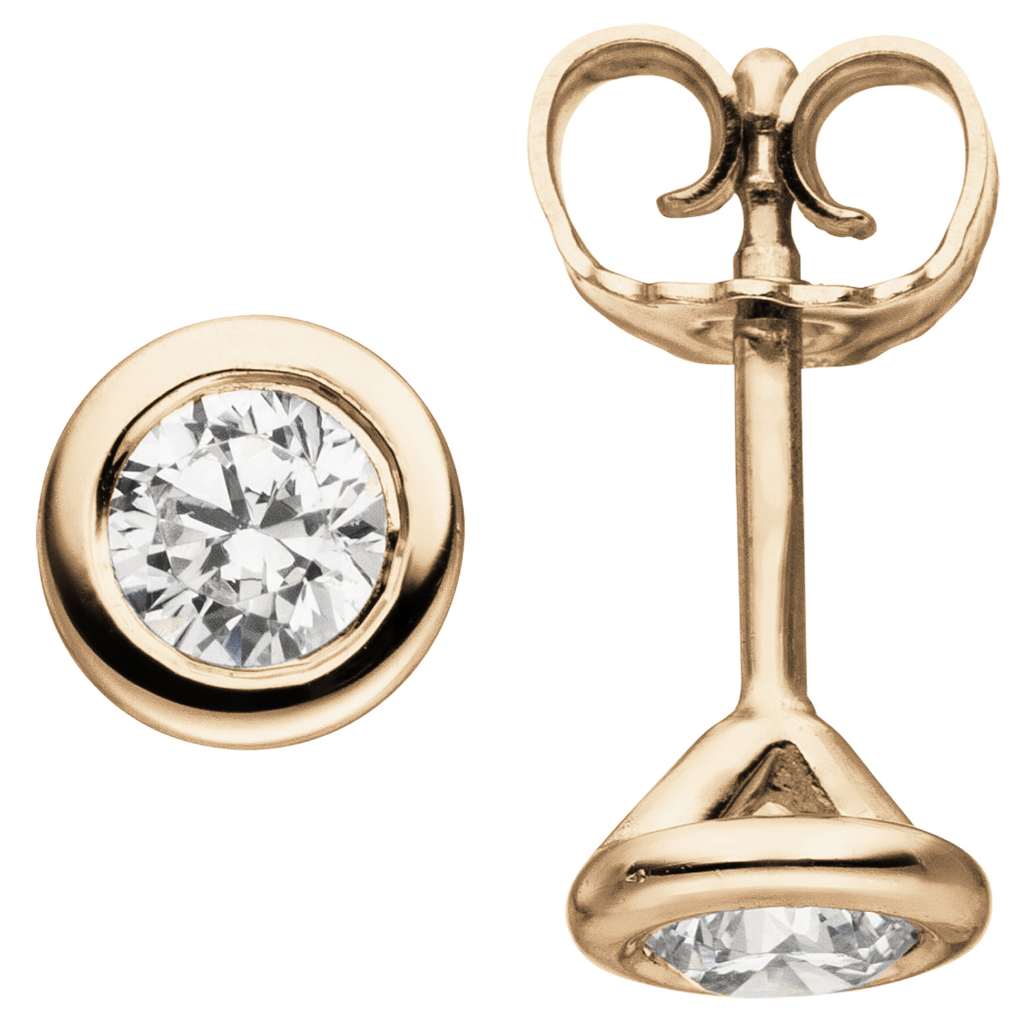 1 Paar Ohrstecker aus 14 Karat (585) Rotgold mit 2 Diamant-Brillanten, 0,50 ct., W/SI wesselton (weiß), SI=(kleine, mit bloßem Auge nicht erkennbare natürliche Einschlüsse), Feinbearbeitung gut, Durchmesser ca. 6 mm, Gewicht ca. 1,6 g * Bitte beachten Sie die Maße! Auf dem Foto kann der Artikel größer wirken *