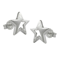 Leuchte mein Stern, leuchte! Ein Stern erstrahlt auch in der Dunkelheit und verkörpert das Glitzern und Glänzen, nicht nur am Himmelszelt. Das beliebte Sternenmotiv ist mit diesen 10x10mm großen Stecker Ohrringen in 925er Sterling Silber aufwendig verarbeitet. Eine Sternenhälfte ist mattiert, die andere glänzend und mit je 2 funkelnden Zirkonia besetzt. Lassen Sie Ihren Augenstern erstrahlen und verschenken Sie eine kleine Aufmerksamkeit mit diesem traumhaft schönen Anhänger!